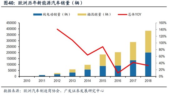 事实上,全球新能源汽车的市场结构在发生变化。广发证券预测,在减排法规的政策约束下,欧洲汽车企业加快电动车转型布局,到2025年有望实现新能源汽车400万辆以上产销,带动锂电池需求135GWh,新增市场空间800亿元以上,成为中国之外第二大新能源汽车及锂电池市场。