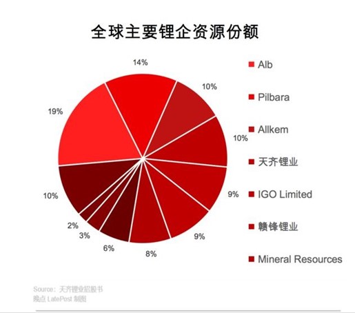 据天齐锂业招股书,全球79%的锂矿资源掌握在雅宝ALB)(美国)、皮尔巴拉(Pilbara)(澳大利亚)、Allkem(澳大利亚)、天齐锂业(中国)、IGO LImited(澳大利亚)、赣锋锂业(中国)和 Mineral Resources(澳大利亚)7 家公司手中。