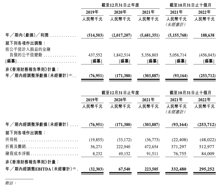 报告期内,KK集团非《香港财务报告淮则》计量的经调整净利润分别为-7695.1万、-1.71亿、-3.04亿、-2.54亿元;经调整EBITDA分别为-3230.3万、6754.0万、2.24亿、2.95亿元。