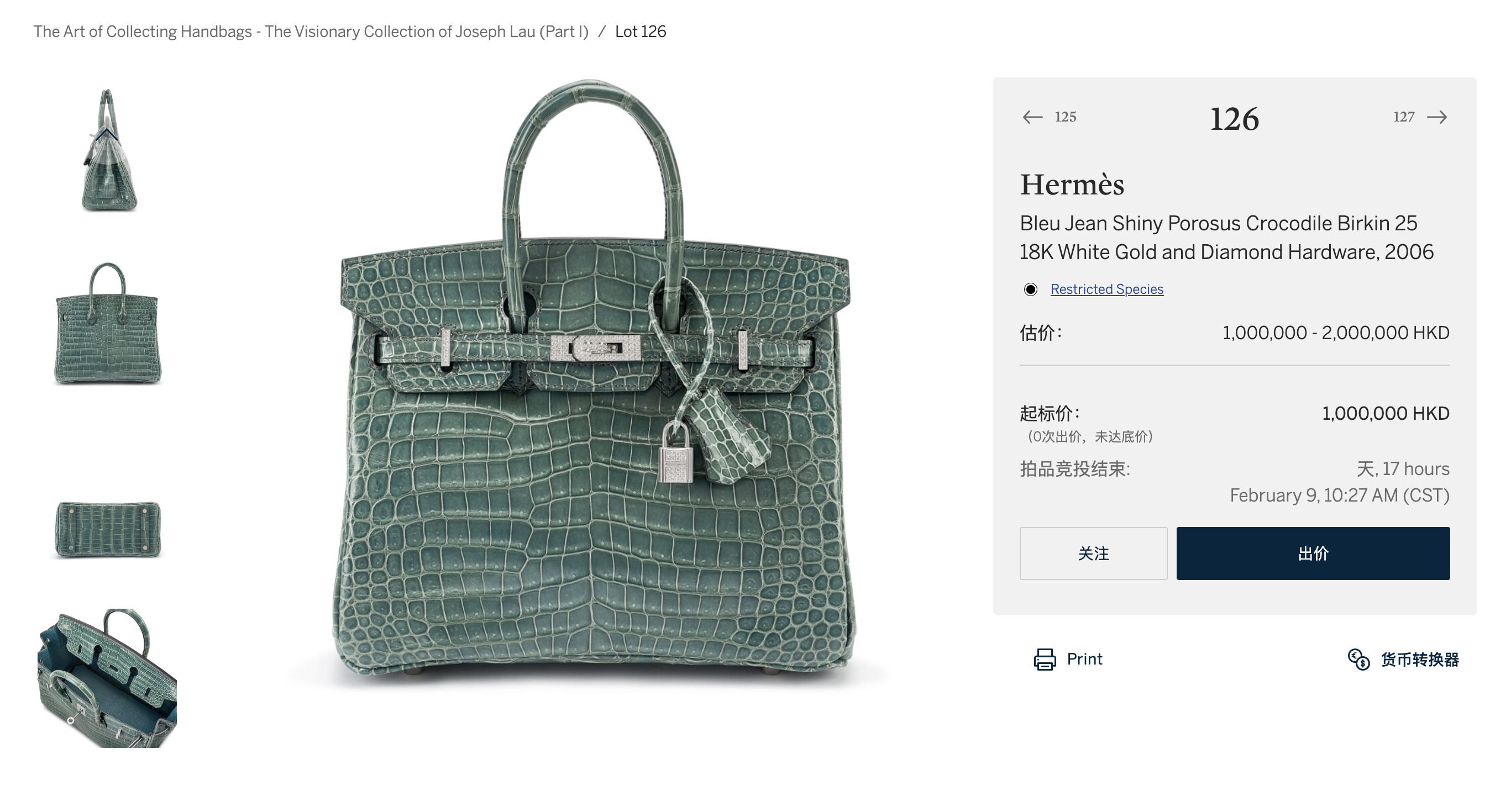 “此次拍卖中的限量版都是过去二十年来极具代表性的款式。”苏富比环球手袋及配饰部主管Morgane Halimi向界面时尚表示,“爱马仕铂金包或凯莉包是入门级投资和收藏的好选择。”此次本拍卖所得部分收益将捐出作慈善用途。