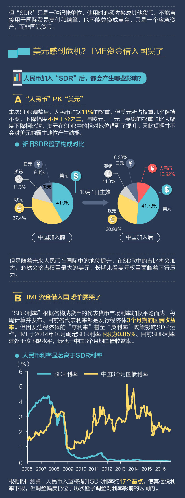 国际货币基金组织于去年11月30日宣布,将人民币纳入SDR货币篮子。人民币所占权重低于美元和欧元、高于日元和英镑,成为世界第三大货币。人民币加入SDR后将会产生怎样的影响?人民币的汇率又将走向何方?