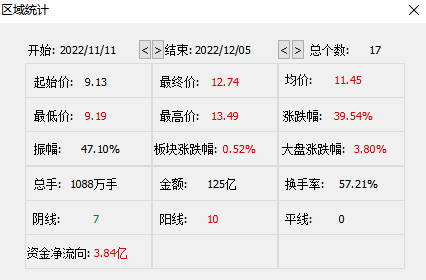 东方财富终端数据显示,2022年11月10日至12月5日,国际医学共成交1088万手,成交量125亿元,换手率57.21%,股价涨幅为39.54%,资金净流入3.84亿元,远超此前数据。