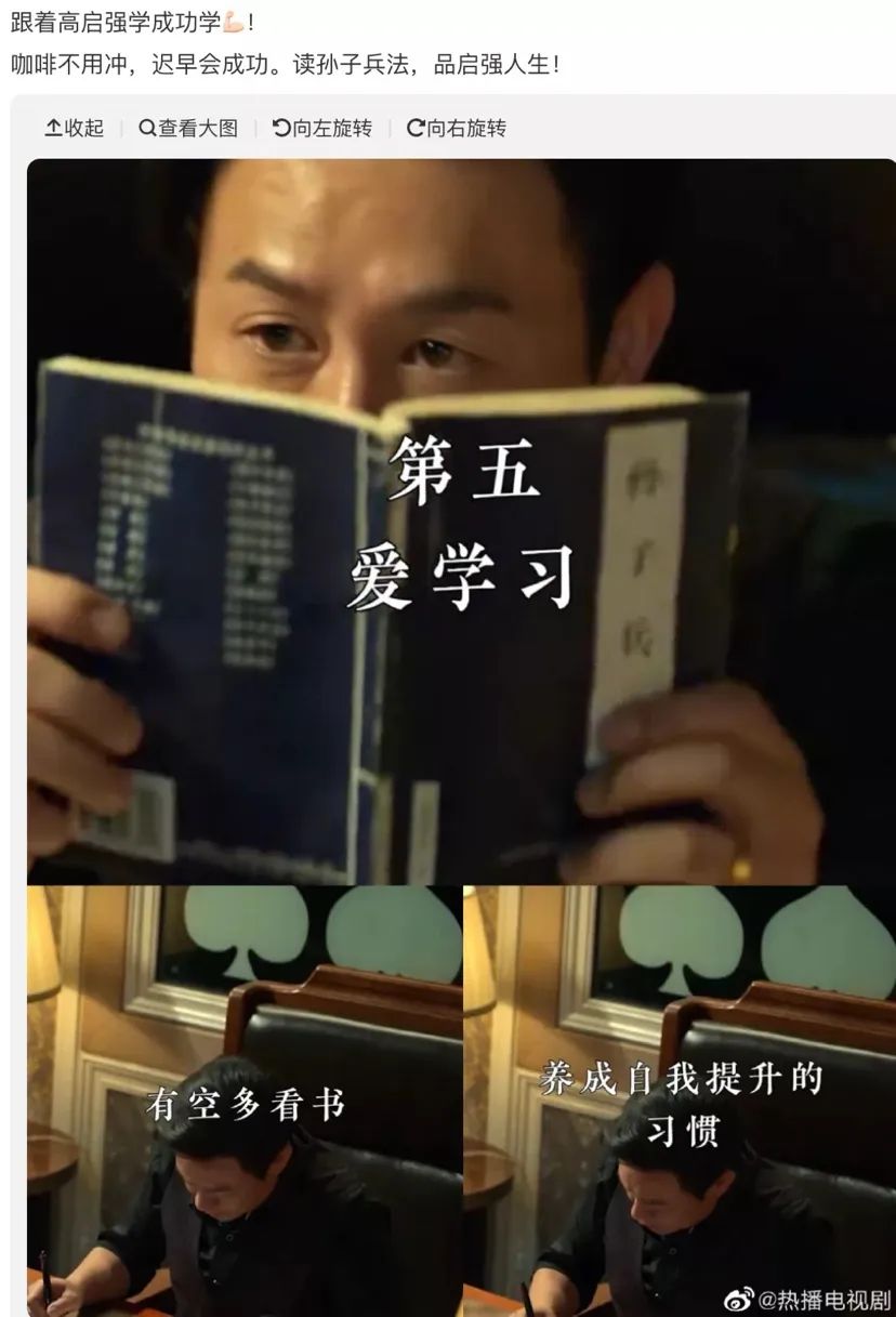 电视机剧《狂飙》中,主人公高启强在警察安欣的建议下研读这部“老书”多年,也会随口引用书中“围师必阙”的典故。一边,剧情推动越来越深入;另一边,高启强扮演者张颂文的关注热度越来越高,这些都为“带货”打下基础,让原本销量一般的《孙子兵法》瞬间走红,销量一路狂飙。