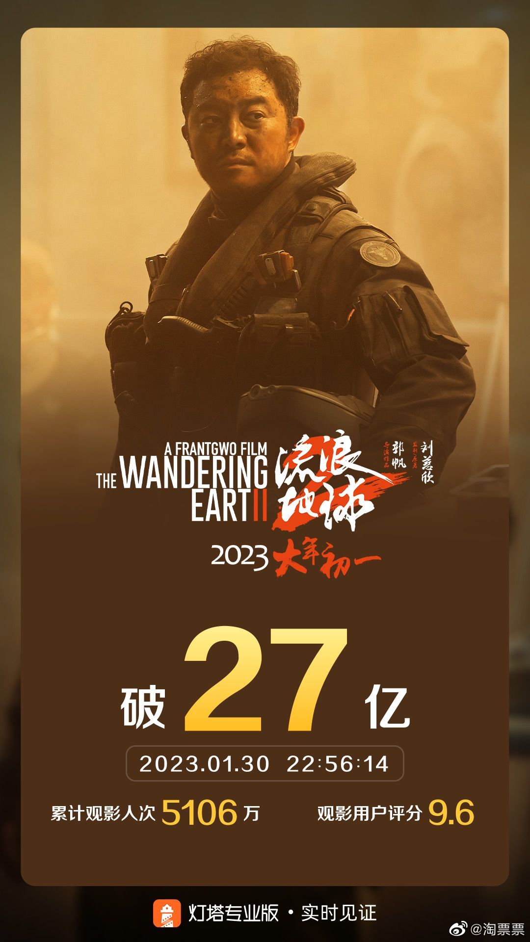 @淘票票 微博1月30日消息,据灯塔专业版,电影《流浪地球2》票房突破27亿。