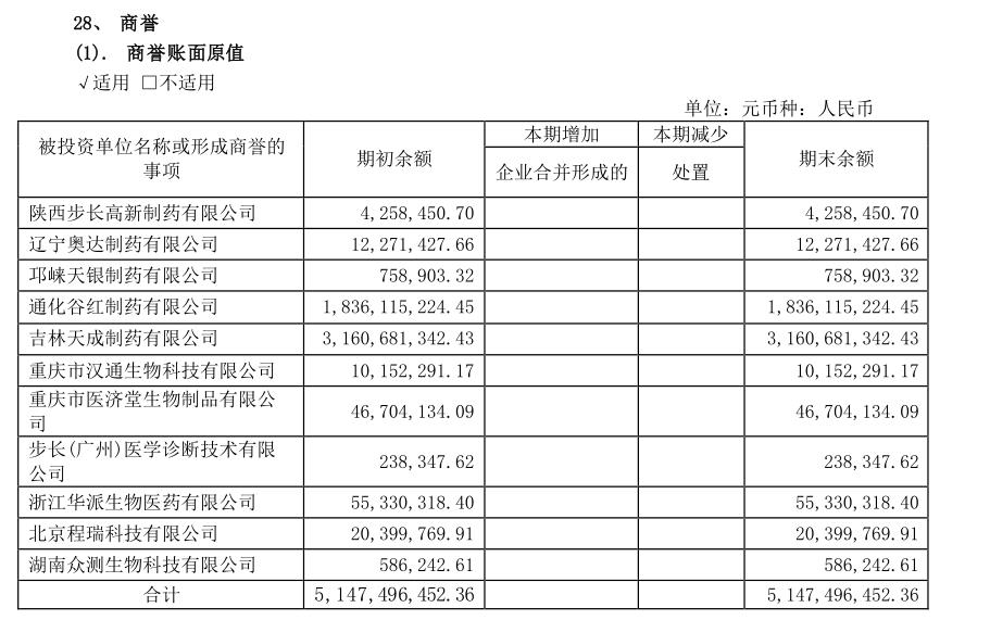 然而,频繁的收购扩张,让步长制药积累了巨额商誉,巨额的商誉则为资产减值埋下隐患。
