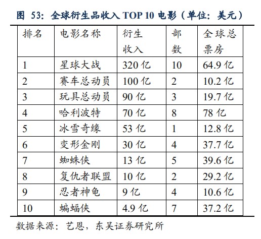 这其实和国外IP衍生品市场的发展状态是一致的,在好莱坞成熟的电影工业中,科幻电影的周边产品不仅远远大于电影票房的收入,且是玩具类衍生品的主要支撑,直接关系到衍生品全球零售市场的增长。
