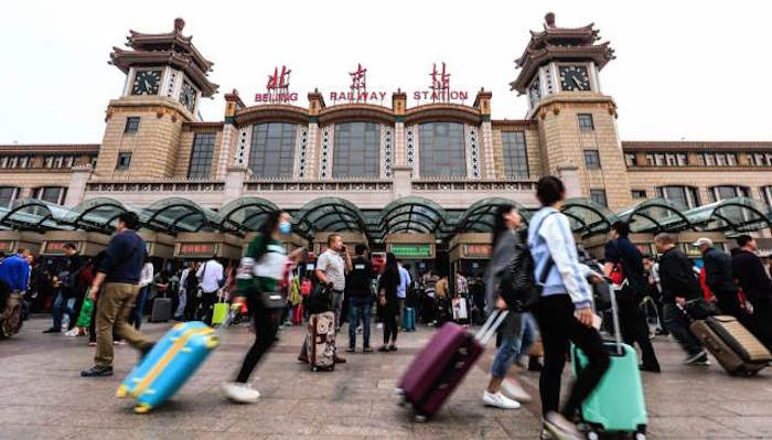 2016年9月30日,十一国庆黄金周前一天的北京火车站,长假出游的人集中出行的一天,火车站人头攒动,但秩序井然。