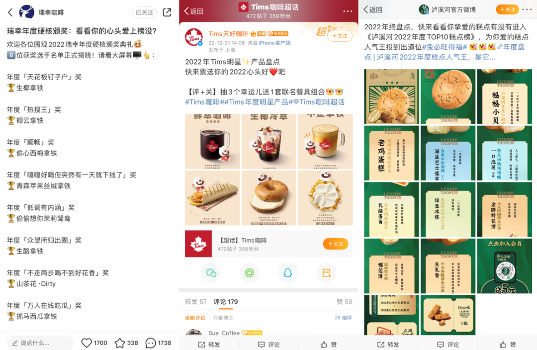 2022年年末,瑞幸、Tims、泸溪河等品牌都发布了自己的年度人气产品榜单,从榜单上的经典产品+人气新品并存的现象中可以看出,随着消费者多元的需求变化,一方面,一些经典大单品有着长久的生命力;另一方面,上新依然是品牌增加曝光,扩展新人群,寻找新增长机会的重要途径。
