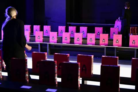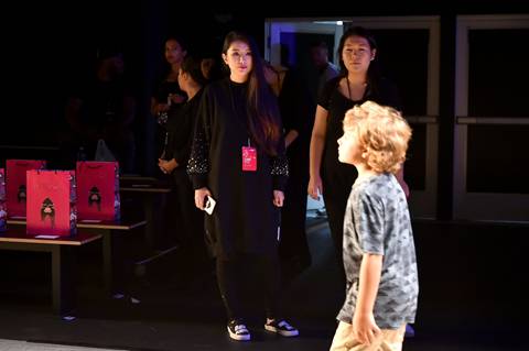 现场布置也是花足了功夫,礼品袋排满了座位,设计师刘嘉最爱的玫红色让以往高贵冷艳的纽约时装周秀场也变得生动起来。