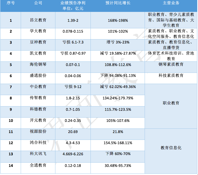 其中,昂立教育预计2022年净利润1.39亿-2亿元,同比增长168%-198%;学大教育净利润780万-1150万元,同比增长101%-102%。