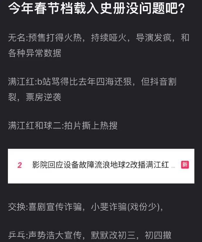 易烊千玺、王一博两位年轻顶流拿到春节档的入场券,吴京携《流浪地球》续作强势入局,这都注定了今年春节档的不平凡,也让各路粉丝和KOL涌入,在各大社区都吵得热火朝天。