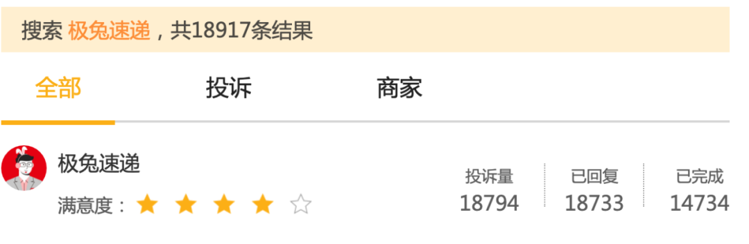 黑猫投诉上极兔速递的投诉量,图源黑猫投诉