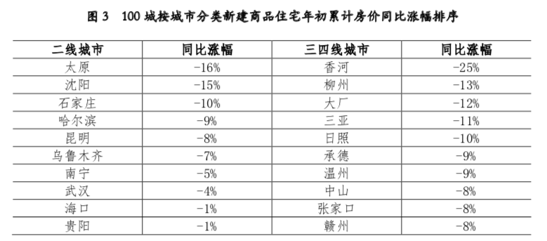 易居房地产研究院研究总监严跃进在报告中指出,2022年,二线城市中,新房价格跌幅最大的十个城市分别是太原、沈阳、石家庄、哈尔滨、昆明、乌鲁木齐、南宁、武汉、海口和贵阳,这些亦或是北方省会城市,或是旅游市场遭到明显冲击的城市。