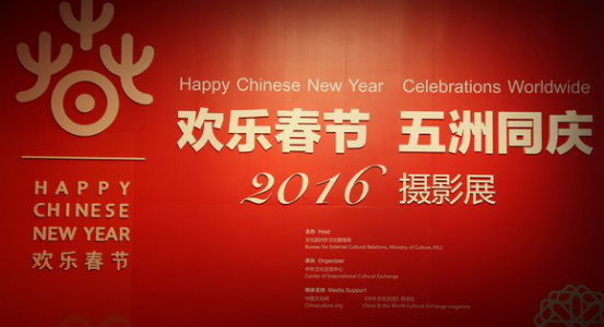 2016年9月29日,由文化部对外文化联络局主办,中外文化交流中心承办的“欢乐春节 五洲同庆”2016“欢乐春节”活动摄影展在中国美术馆展出。展览围绕“欢乐春节”主题,精选了百余幅来自亚洲、欧洲、非洲、美洲和大洋洲各国举办庆祝中国春节活动的现场照片,展现了春节这一凝聚中国人情感与文化传统的重要节日在五大洲落地生根的真实情景以及中外文化交流的盛况。据悉,本次展览持续到10月9日。