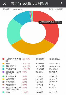 最强IP、最强演员阵容合力打造的年度情感巨制《从你的全世界路过》已于9月29日在全国公映,上映第二天累计票房达到1.38亿,单日票房、累计票房均高于其他影片,带热了自暑期以来就颇为低迷的电影市场。在口碑方面,猫眼评分8.8,淘票票评分8.9,微票儿评分8.6,均位居同档期影片前列,《从你的全世界路过》口碑票房双丰收,继续领跑国庆档。