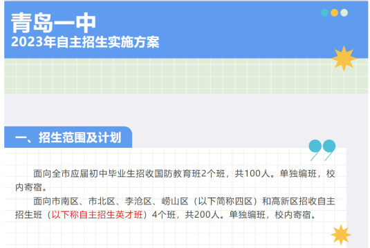 目前,已有青岛一中、青岛二中、青岛实验高中等学校发布具体工作安排和自招实施方案。