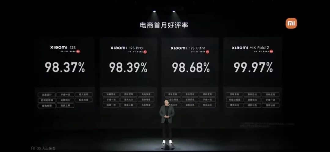 小米13发布会上,雷军再次站到舞台中央,试图用一连串的电商平台好评率,证明小米高端机的实力。一位小米用户在评论区留言:“很难想象库克会在苹果发布会上拿电商平台的好评率来为产品背书。”