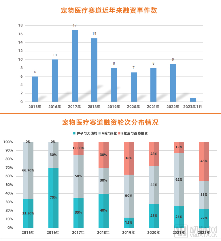 尽管从数据上看,宠物医疗赛道融资事件数自2019年起呈整体下降趋势,但在融资的轮次占比上,早期项目逐渐减少,项目阶段不断后移。也就是说,随着赛道头部企业逐渐走到后期,宠物医疗行业正日趋成熟,并迎来关键发展节点。