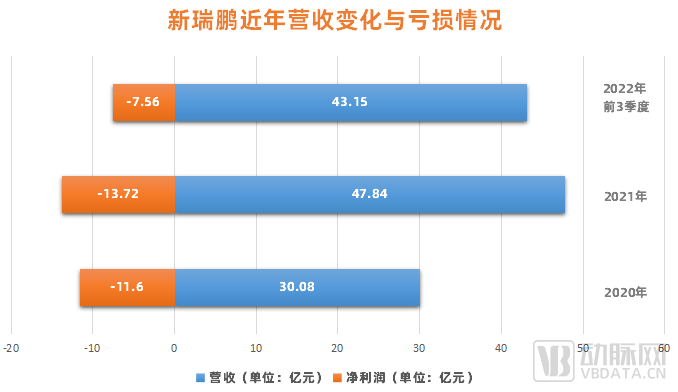 根据招股书披露的业绩数据显示,2020年到2022年前三季度,新瑞鹏营收分别为30.08亿元、47.84亿元和43.15亿元;净利润分别为-11.6亿元、-13.72亿元以及-7.56亿元,三年亏了约30亿元。