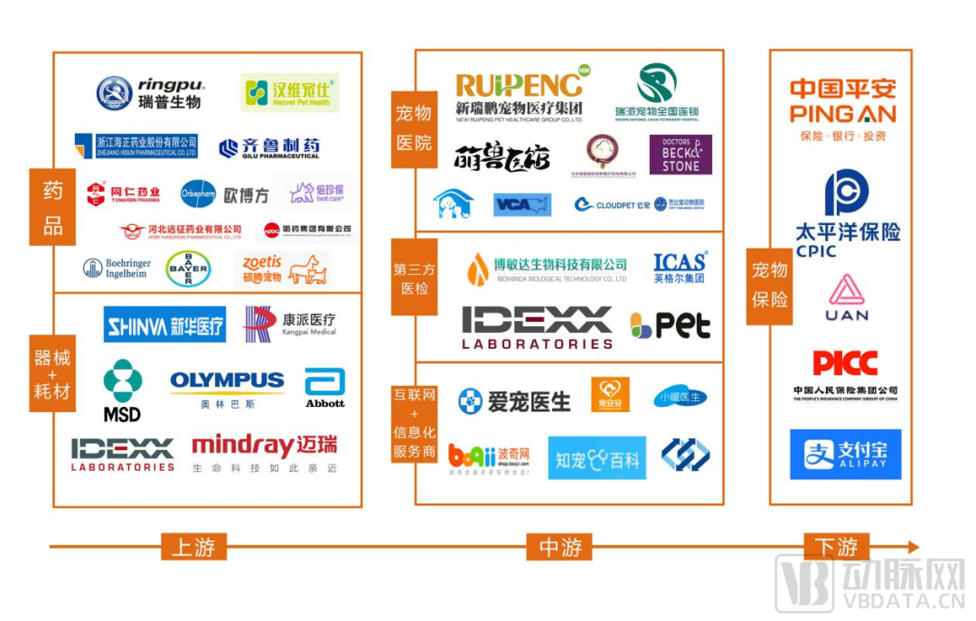 首先,宠物医疗行业的产业链可分为上游的药械供应商,中游的服务提供方,以及下游的支付方。