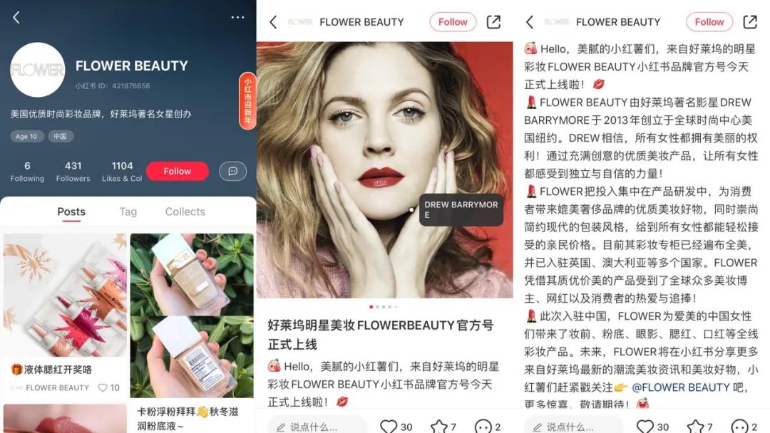 然而,部分海外网红品牌在进入中国时却悄无声息,如美国演员Drew Barrymore所创办的FLOWER BEAUTY。2019年5月该品牌正式进军中国,入驻天猫国际,并上架了粉底、眼影、腮红、口红等全线彩妆产品。