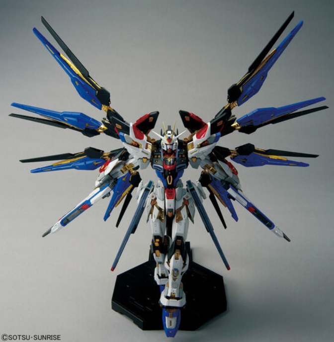 它最大的特色在于背部的无人机武装「Fatum-00」,看起来像披上了斗篷,分离后能藉由滑动机构展开正义高达的站立空间,体积再次扩大,份量感十足。