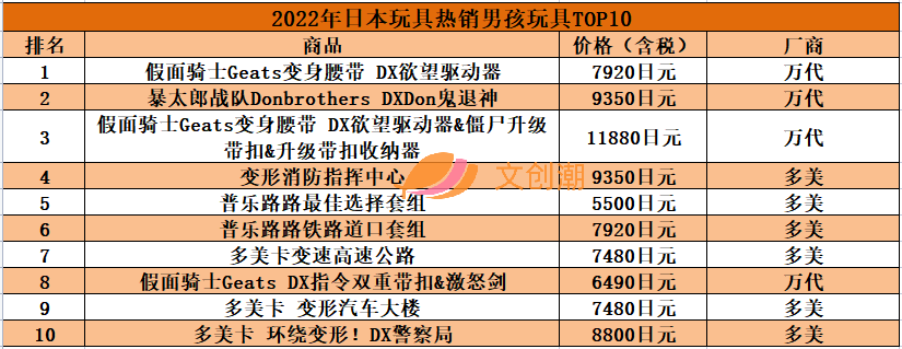 日本玩具信息网站“おもちゃ情報net.”根据市场调查公司GfK Japan给出的日本全国玩具销售店的实际销售数据,对2022年间玩具销售金额最高的各种类玩具TOP10进行了总结。