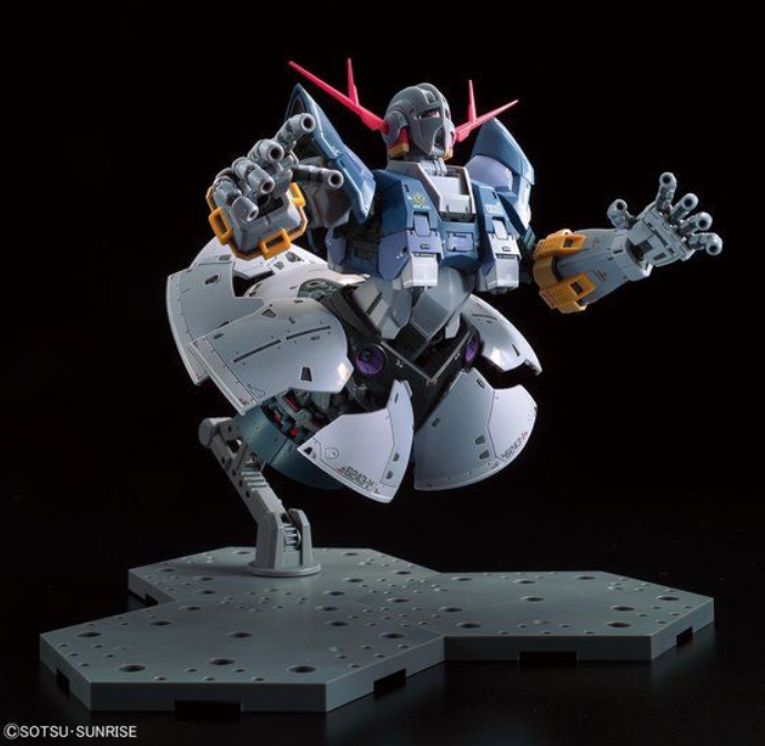 这款机型以1/144的比例还原了剧中超26米高的大型MS,整体高度18cm。除一般的MS形态,可还原飞行模式,变形只需活动原有的关节部分即可。附带光束军刀、光束步枪、盾牌等武装及手部零件。