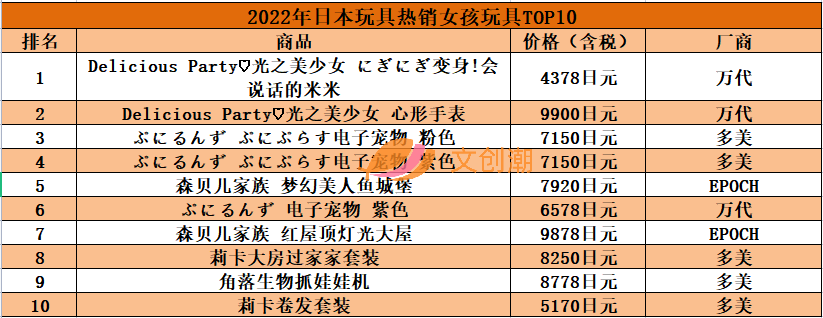 文创潮统计发现,日本市场的热销女孩玩具榜,上面基本都是典型的女孩过家家、化妆类玩具。