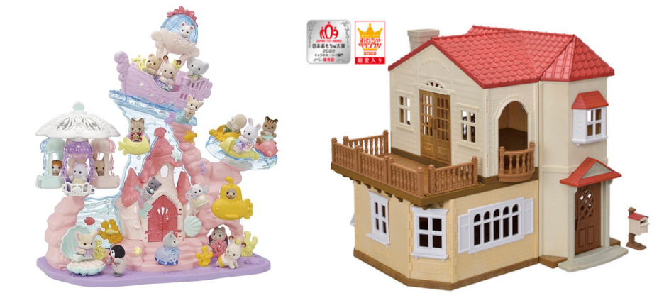 热销女孩玩具榜5、7位来自EPOCH社的森贝儿家族系列,“梦幻美人鱼城堡”“红屋顶灯光大屋”。