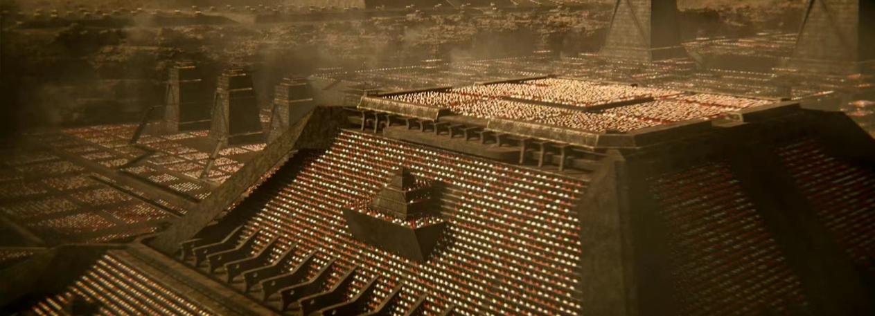 禾风则是非常喜欢《三体》电视剧中特效与动画给人带来的科幻感,“我最喜欢的几个场景,包括用动画呈现的火鸡与农场主的故事和《三体》游戏。前者给人以一种非常强大的视觉冲击,把寓言的氛围感拉满,后者的3D动画中灰暗的色调,很有颓丧、荒诞的风格,至少让我觉得很能体现三体世界的人的绝望。”