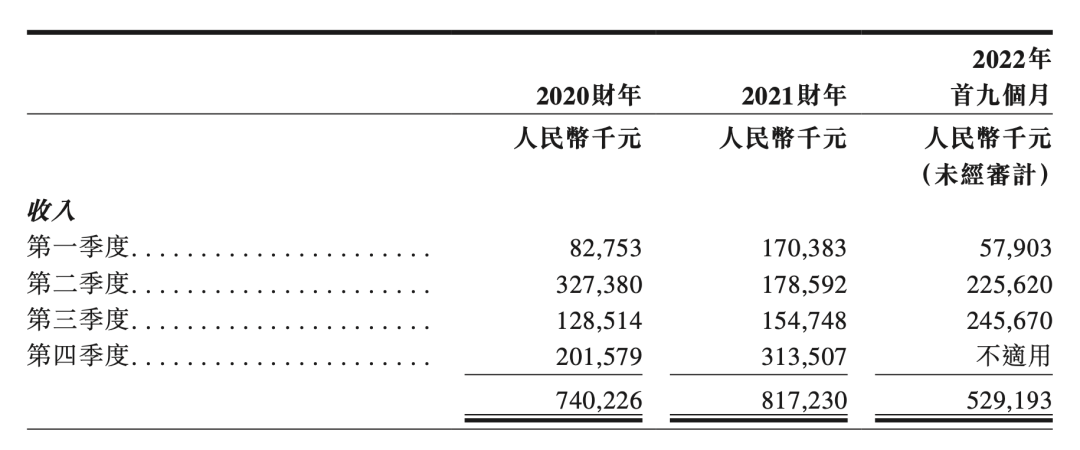 ▲2020年至2022年1-9月优必选科技不同季度营收变化