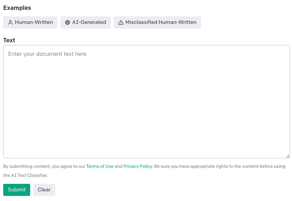 AI文本分类器直通门:https://platform.openai.com/ai-text-classifier
