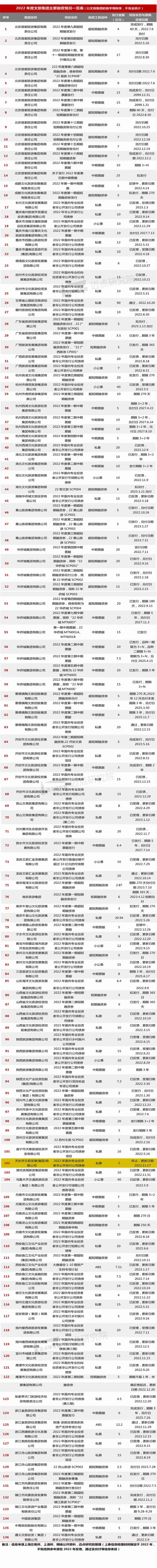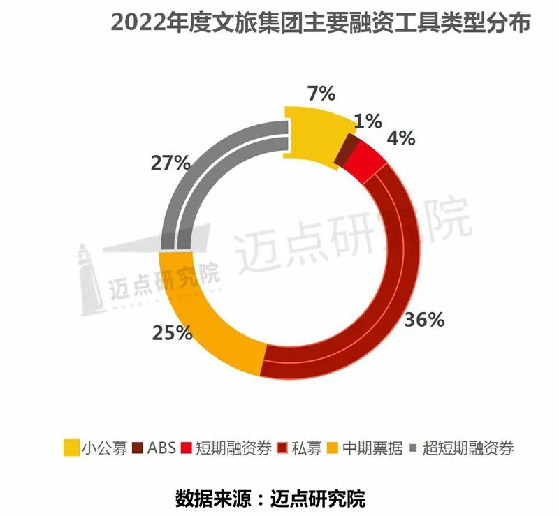 纵观2022年度文旅集团的融资工具与类型:私募(PE)占比最高,为36%;其次是中期票据(MTN)和超短期融资券(SCP),占比分别为27%、25%;其余少部分为小公募、短期融资券(CP)和资产支持证券(ABS)。整体来看,各大文旅集团积极拓宽多元化融资渠道,进一步提升资金使用效率,为文旅重大项目建设、景区提档升级及文旅产业多元化发展奠定坚实基础。