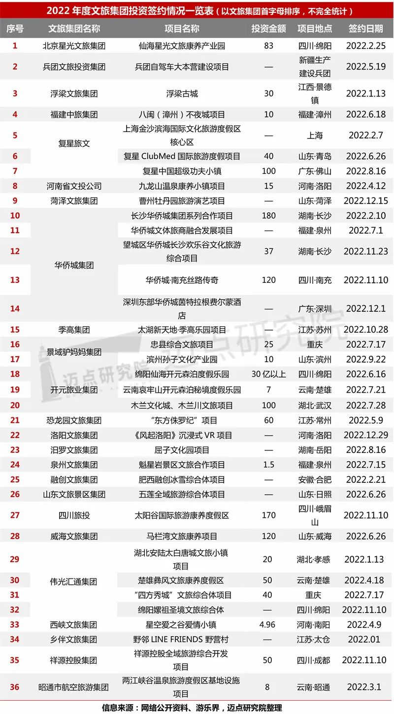 其他地方文旅集团则主要聚焦本省本地项目业务,如浮梁文旅集团签约浮梁古城项目、威海文旅集团签约马栏湾文旅康养项目等。