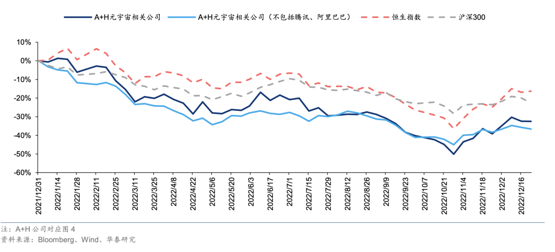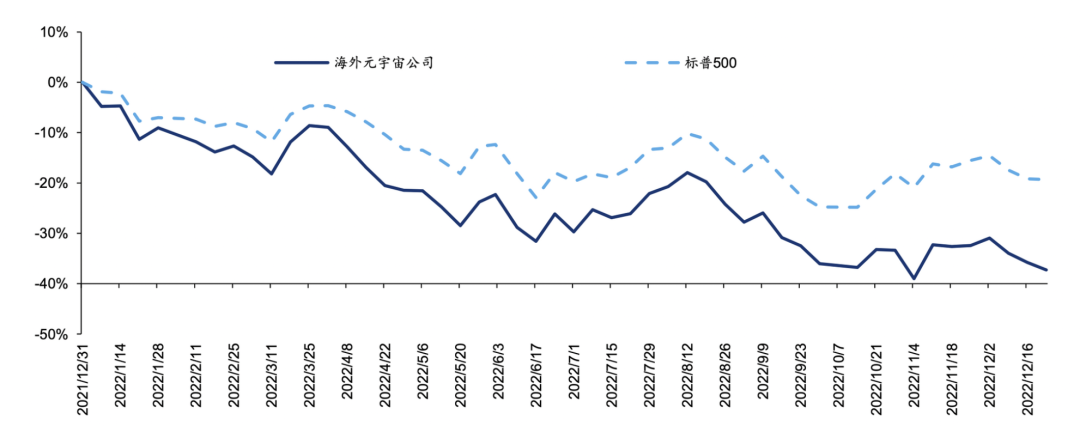 2022年海内外元宇宙相关公司合计市值变动幅度