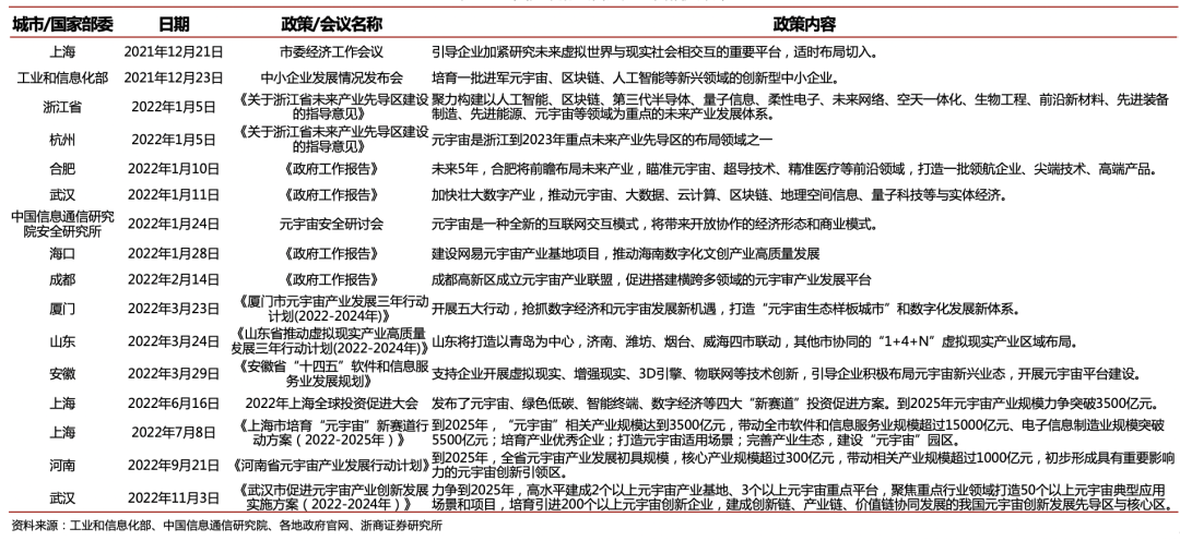 1. 国内各地政府陆续出台相关积极政策,进一步催化板块加速发展,激发市场整体活力;细分方向上,对Web3等技术和元宇宙赋能实体经济应用的地方性政策将继续推进,游戏板块政策利空已基本落地、市场有望反弹;