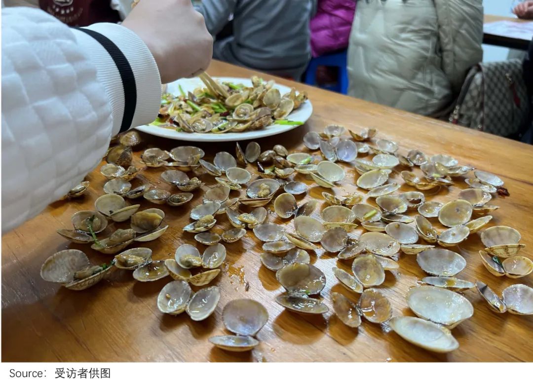 事情的起因是,第一天行程结束,她们专门赶去桥港老街吃海鲜。但每一份菜,质量都严重缩水。