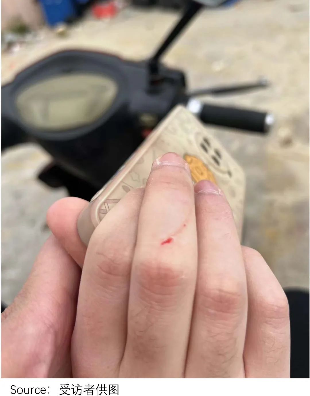 谁料话一出口,村民竟然恼羞成怒,拦下他们的电瓶车,一把拔走了钥匙。文问男友出手阻止,不仅手被划伤,还被威胁“叫人来打你们”。
