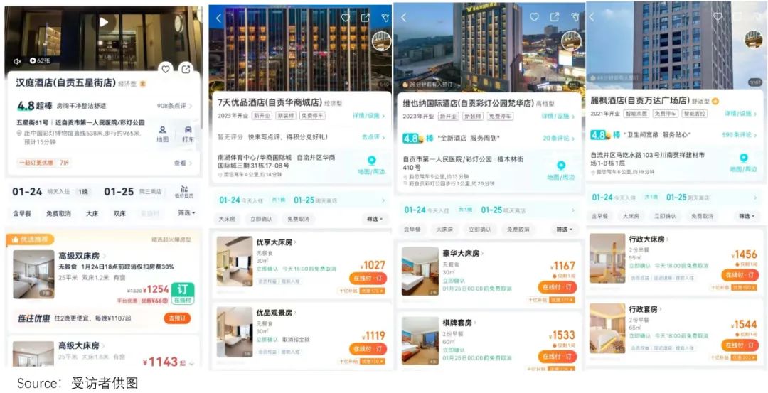 其实,问题不在于无房可订,而是不敢订:大年三十还只要两三百一晚的酒店,大年初一价格就翻倍了,离景区较近的便捷酒店,更是飙涨至上千元,几乎是平时的5倍。