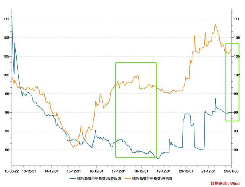 上图基本上验证了我们前文对内需市场的一些判断,如在供给侧改革之下,企业转以下沉市场去库存战略,价格指数有明显的下行经历。疫情之后,价格指数随生产端供供给变化产生极大波动(服装服饰在产能以及去库存中价格上行明显),2022年后又转向去库存战略,价格又断崖式下行。