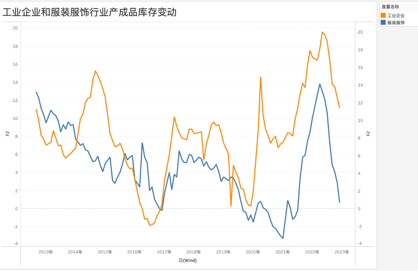 我们之所以使用工业品和服装服饰行业两组数据对比,意在将整个工业体系库存情况和市场化程度极高的服装业放在一起,以判断社会总库存的走势情况。