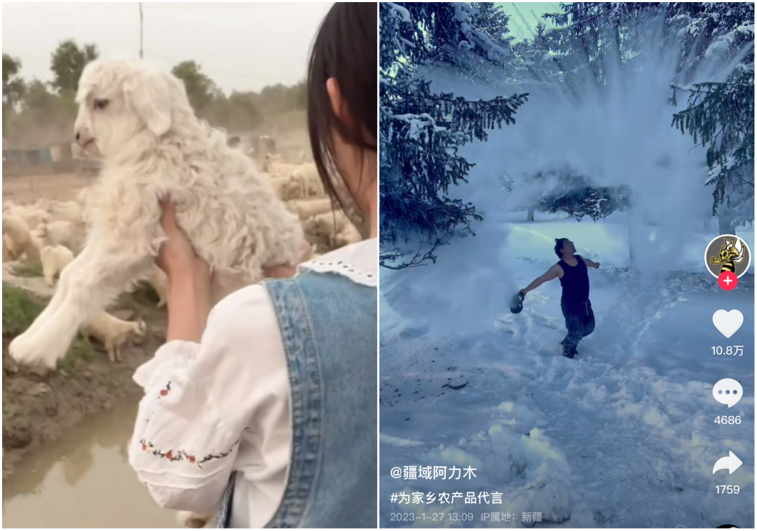 在这一过程中,本身在乡土之中的网红天生带有向城市观众展现“奇观”或“幻想”的作用,李子柒贩卖的是对田园生活的想象,而灰太狼的羊和疆域阿力木,则在贩卖西北边疆的奇观和人情。