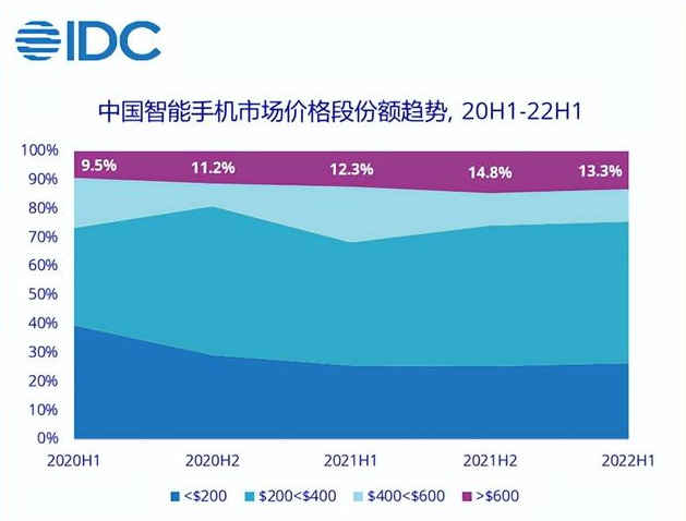 此外,手机行业还有一条常识无法忽略:高端产品处在金字塔尖,市场出货量的反弹主要还是靠腰部以及底座部位的中端、入门级产品来实现。以600美元以上的高端产品为例,2022年年中在大盘中所占比例为13.3%,另外86.7%的出货量皆由600美元以下的产品贡献。