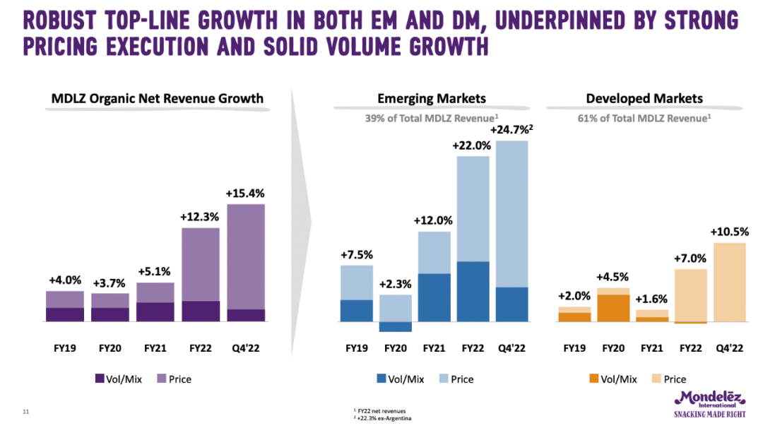 “(中国市场)2022全年仍有高个位数增长,第四季度则增长了两位数。” 冯朴德说。亿滋首席财务官Luca Zaramella补充道,中国业务第四季度增长超过10%,当中3到4个百分点是由于农历新年。不过,当季的高增速不会在今年一季度重现。