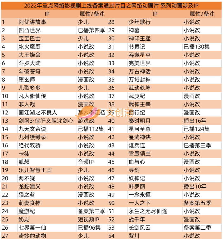 文创潮注意到,不仅动画电影,在动画剧集领域,IP的重要性也是日益凸显。