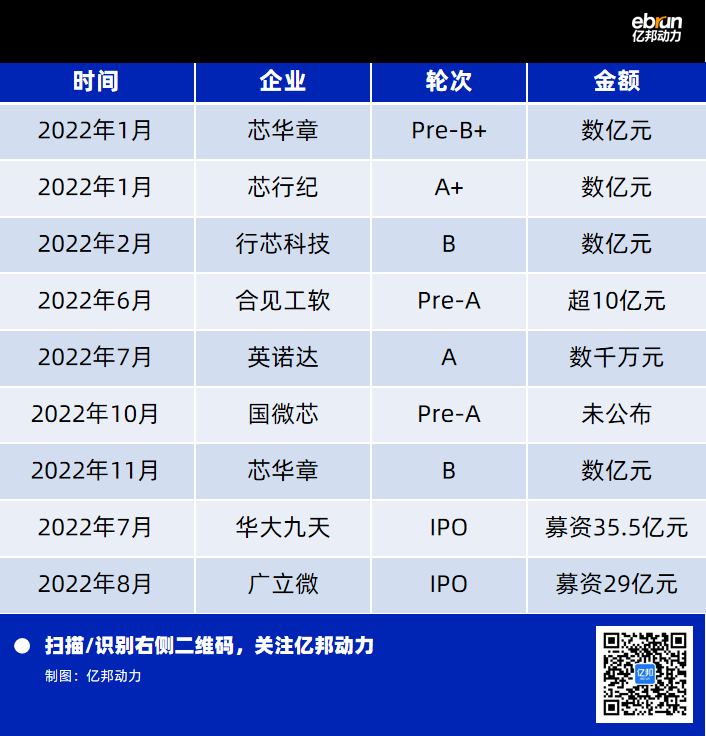 EDA 作为芯片设计软件,是芯片产业链的战略基础支柱之一。2022年中国内地EDA赛道继续爆发,华大九天和广立微在一周内先后在深圳创业板上市;同时2022年有24家公司完成28次融资,融资金额超过20亿元,融资次数比2021年的43次减少了15次。