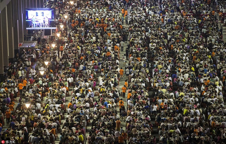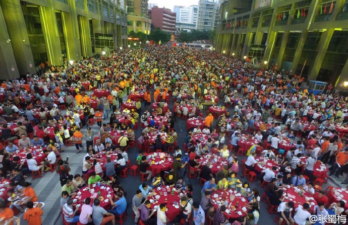 晚上1500桌同吃大餐壮观场面。