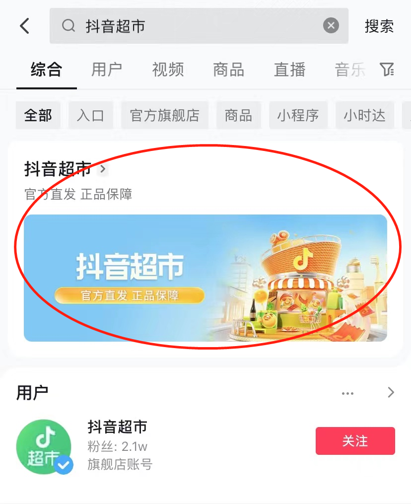 1月28日消息,抖音APP已正式上线抖音超市,用户在抖音搜索栏或商城界面搜索“抖音超市”,即可找到购物入口。