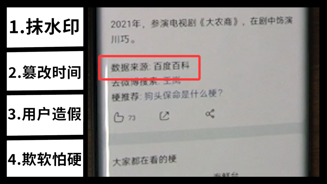 有意思的是,微博还从百度百科搬运了8000多条内容,但每一条都标注了“数据来源:百度百科”。